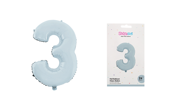 26 INCH FOLYO BALON RAKAM MAT MAVİ 3 BALONEVİ