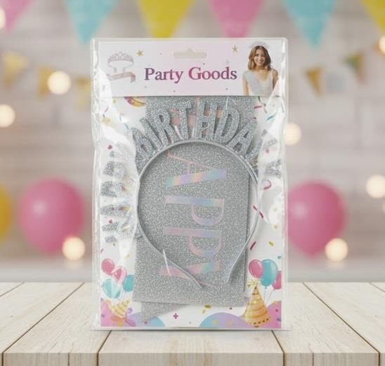 ERT-TAC-103-GMS TAÇ KUŞAK GÜMÜŞ HAPPY BIRTHDAY SETİ (43374)