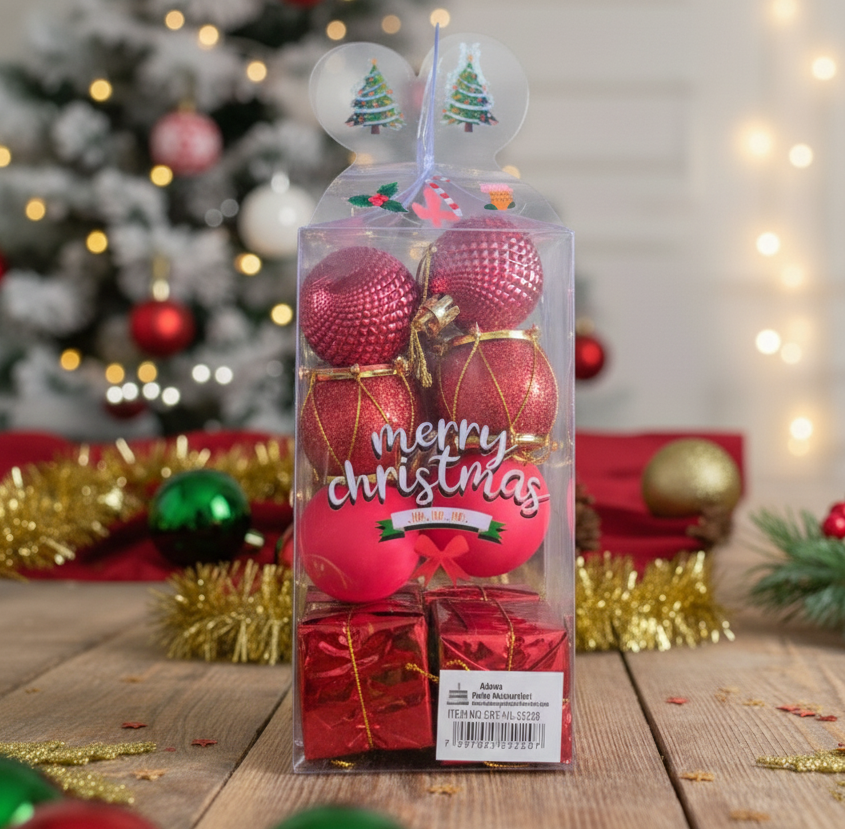 ERT-YIL-25220 YILBAŞI AĞAÇ SÜSÜ KIRMIZI 16 PARÇA PVC KUTULU