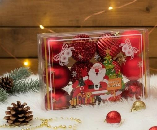 ERT-YIL-25224 YILBAŞI TOP KIRMIZI 6 CM 12 ADET PVC KUTULU