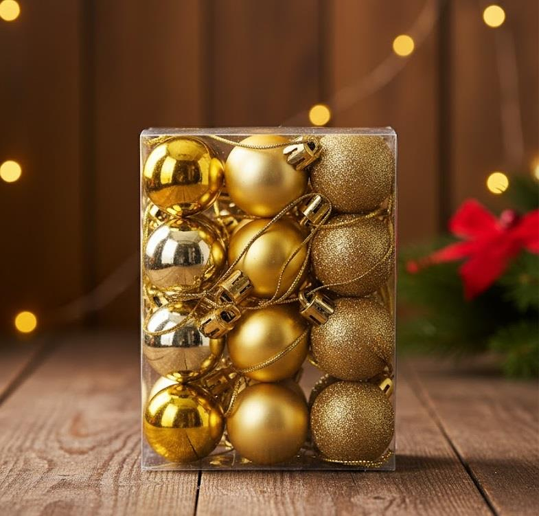ERT-YIL-25301-GLD YILBAŞI TOP 3 CM 24 ADET PVC KUTULU (43275)
