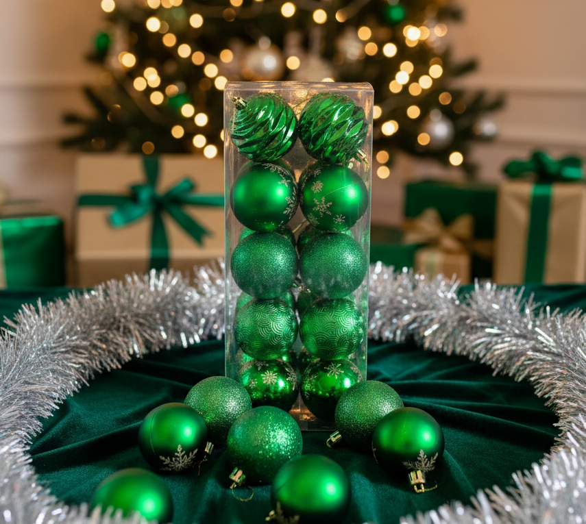 ERT-YIL-25313 YILBAŞI TOP YEŞİL 8 CM 20 ADET PVC KUTULU